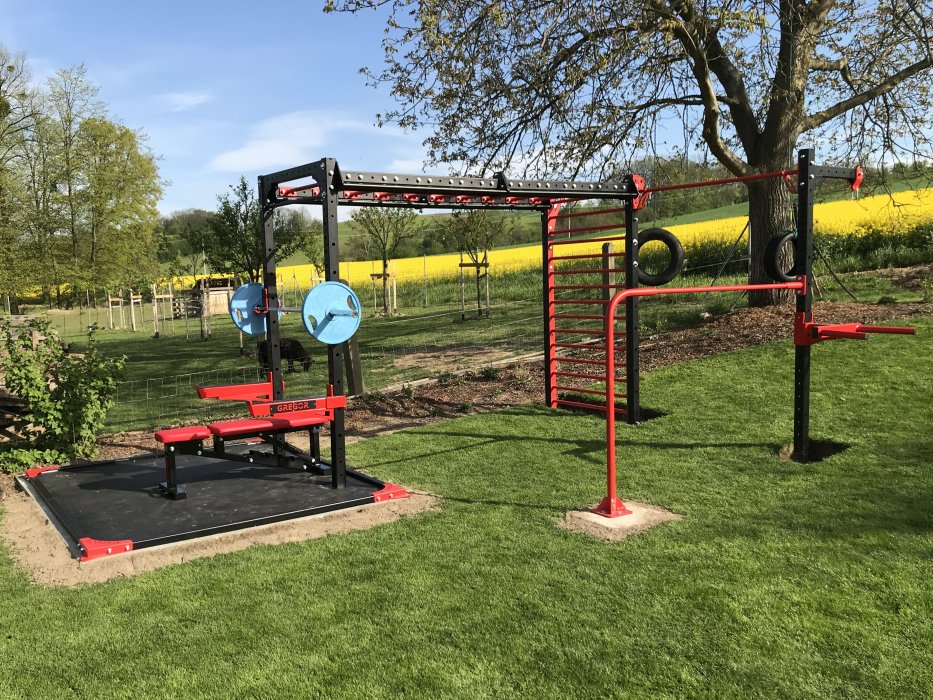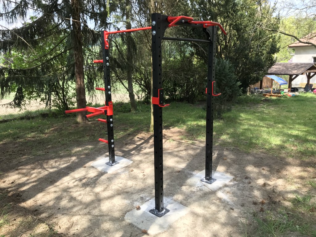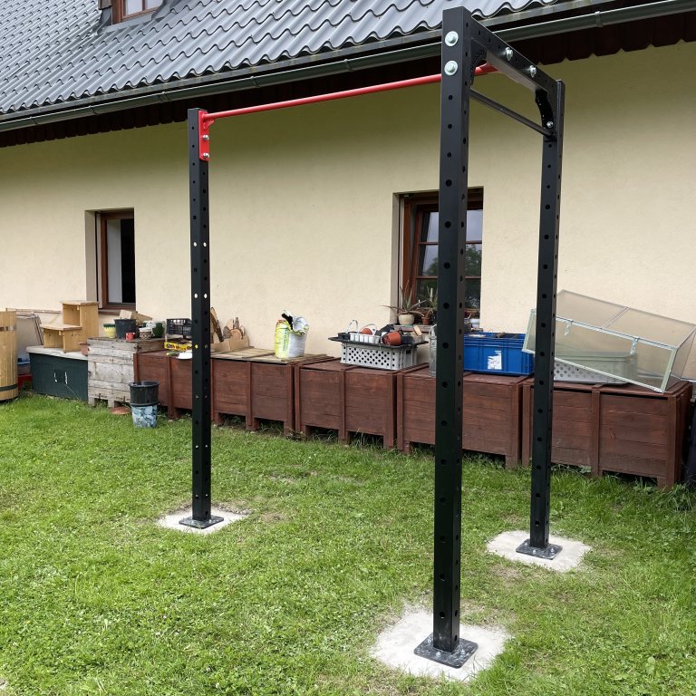 Venkovní konstrukce představuje nejjednodušší a nejrychlejší způsob, jak mít funkční posilovnu přímo na zahradě. Je určena především pro cvičení s vlastní vahou a funkční trénink, který rozvíjí sílu horní části těla, stabilitu a pohyblivost. Konstrukce umožňuje provádět shyby, přítahy a další cviky, přičemž všechny naše venkovní konstrukce jsou navrženy a vyrobeny přímo Gregor Gym. Díky robustnímu a stabilnímu rámu je trénink bezpečný, a přitom konstrukce zůstává kompaktní, takže se vejde i do menší zahrady nebo na terasu. Konstrukce je ideální pro připevnění kruhu či lana na šplh, stejně jako pro upevnění dosahové plochy pro wall ball, což umožňuje provádět širokou škálu cviků a tréninkových variant pohodlně a bezpečně. Jednoduchá instalace a minimální nároky na údržbu umožňují rychle začít s cvičením bez složitého nastavování či speciálního vybavení.